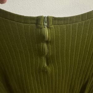 Cropped Army Green Mid Sleeve Ribbed Crewneck Top Zipper Back Size Small