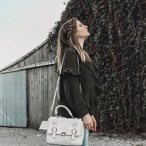 Cropped army green sweater, can be worn off the shoulder or cowl neck style. Ruffle detailing on the front and shoulders. Medium but fits like a small. Worn twice.