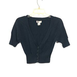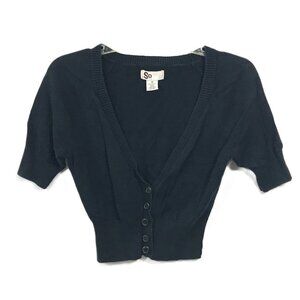 SO Juniors Cropped Black Cardigan Sweater Button Front Knit M