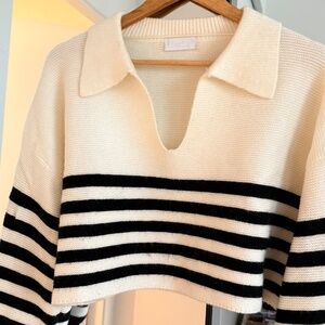 Cropped; Good condition with slight discoloration on one sleeve (as pictured)