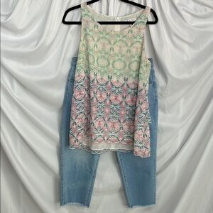 Two front and back pockets with fringe hem line.