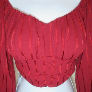Cropped Burgundy Long-Sleeve Blouse | Size Small