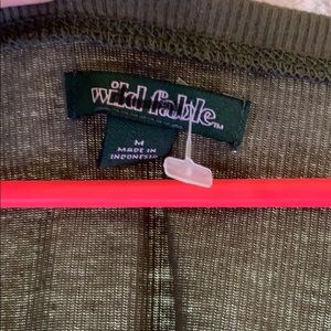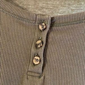 This is an army green top with brown buttons. Slightly cropped. Long sleeve. Never worn. Super soft.
