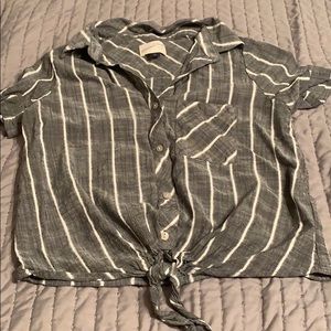 Barley worn, grey striped, button up, tie front detail cropped shirt