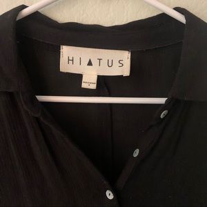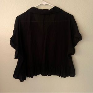Black cropped button up. Buttons down shirt with ruffle on bottom. Loose fit. Good condition, worn a few times