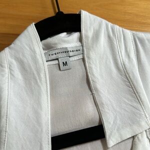 Cropped boxy fit. White with shell buttons.