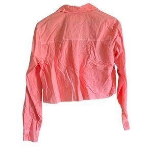 Keywords: cropped shirt, button-down shirt, long sleeve top, casual blouse, women's shirt, pink shirt, crop top, fashion top, stylish shirt, modern blouse, classic shirt, contemporary fashion