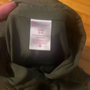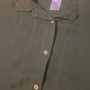 NWOT~washed but never worn, smoke free, and pet friendly home. Cute cropped, elastic and adjustable tie waist, functional buttons, and rolled crop sleeve. Army green in a size small.
