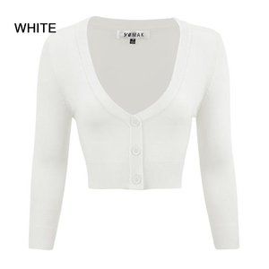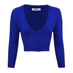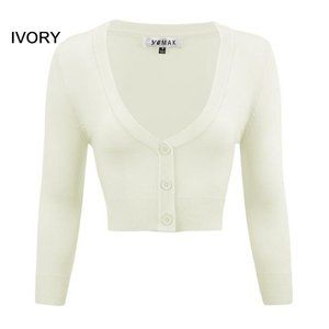 Brand new Ye mak Brand 14 COLORS AVAILABLE Women's Cropped Cardigan sweater 3/4 Sleeve V-Neck Basic Classic Casual Button Down Knit Soft Sweater good quality and stretch 80% acrylic, 18% nylon, 2% spandex - unlined, light weight fabric. Matches Well with Swing Skirts, Dresses, pants. Vintage Style.sizes Large and XLarge Available. the measurements are in the pictures MAK yemak brand.. yemak brand AMAZON PRICE $24.50 Each Basic colors Black, White, Red, Mocha, Ivory, L. Blue, Blush, Camel, Royal Blue, Kelly Green, Baby Yellow, Navy Blue, Peach, and Opal. .... OJO.. OJO... just mention your colors in a message and I'll make your Bundle. Thank you three sweaters for $40 YOU CAN BUY A BUNDLE OF LARGE OR XL........you can buy 2 bundles for the same shipping price