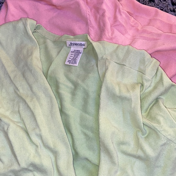 Pink and Green Cardigarns, Cropped, Comes to Midforearm