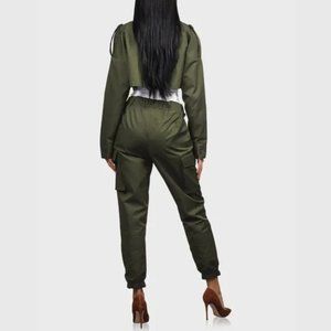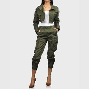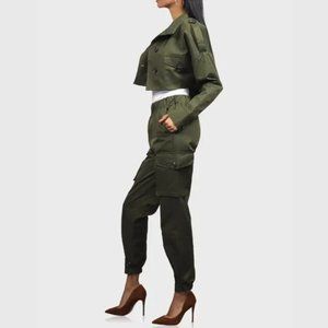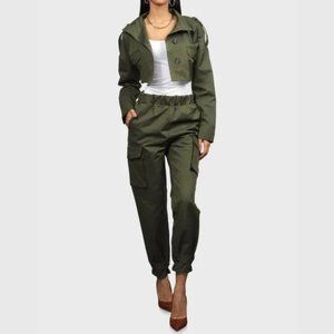 Cropped Cargo Jacket Olive Green