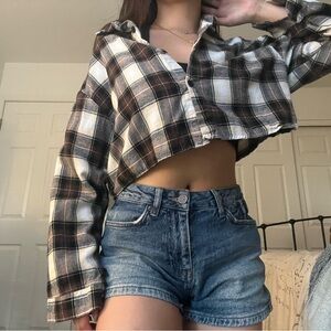 classic plaid flannel, crop is pretty short but fits an XS-S best. perfect for overwear/layering!
