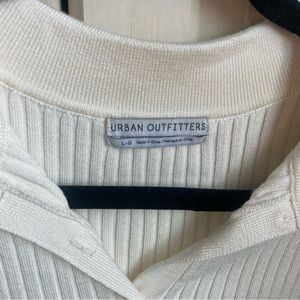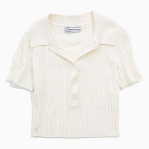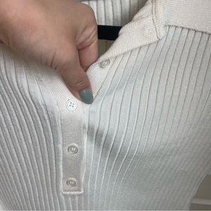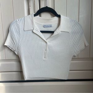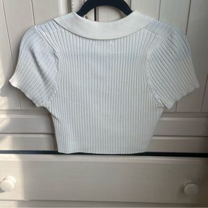 Adorable collared button down crop top ribbed sweater material. Worn a handful of times. Minor red dot near the button, hard to see. Otherwise extremely good condition. True to size