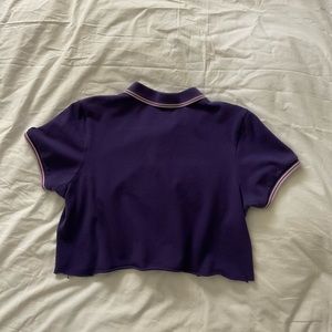 cropped purple top with cute stripes around the arms and collar, no tags but fits like a small