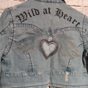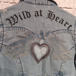 'Wild at Heart' is the text on the back of jacket. Cute little heart design on back, as well.