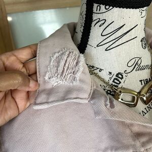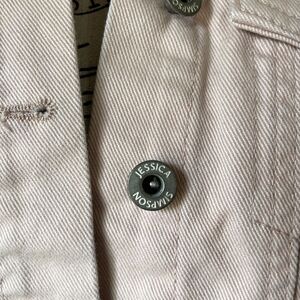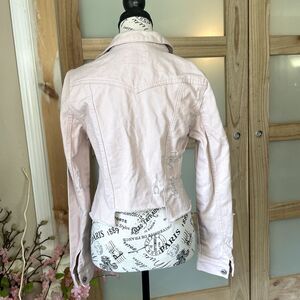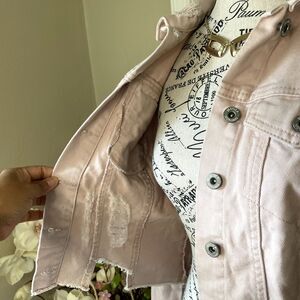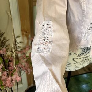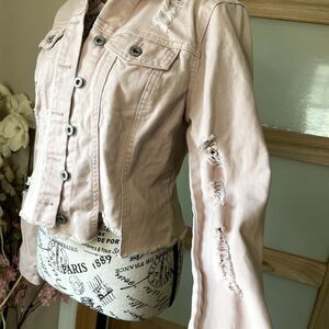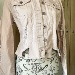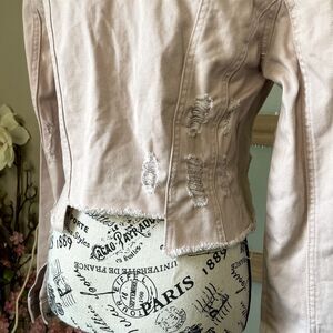 Cropped Denim Jacket Womens M Jessica Simpson Fitted Button Down Distressed