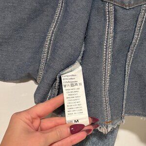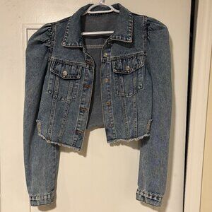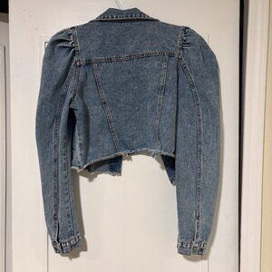 Cropped Denim Jean Jacket with Puffy Shoulders