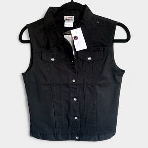 Cropped Denim Vest solid Black Tapered Rhinestone Buttons Grunge Size 13-14Y NWT