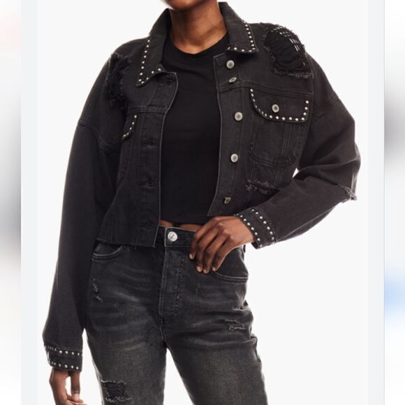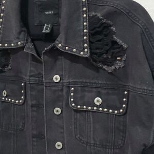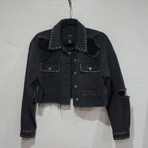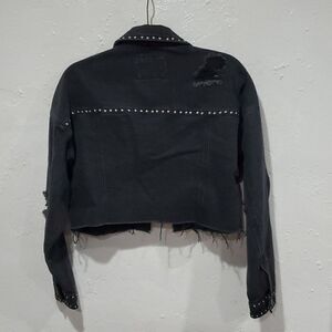 Cropped Distressed & Studded Black Jean Jacket Size XS Oversized