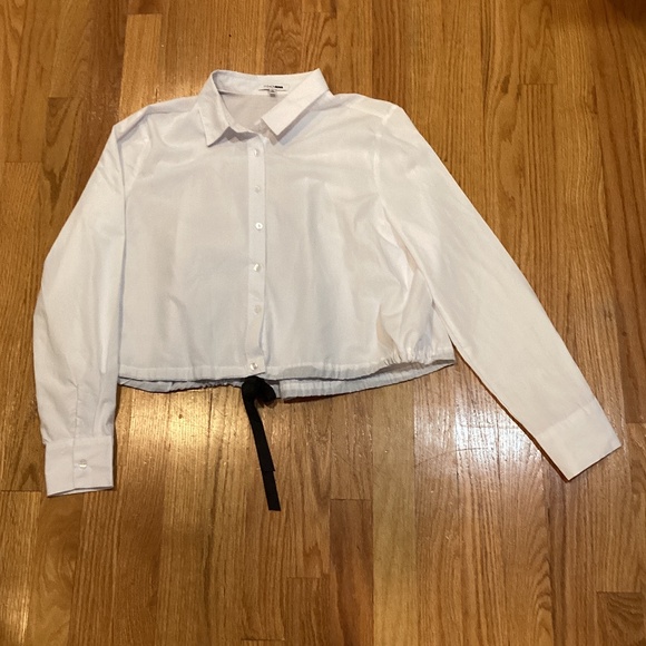 Size medium fashion nova cropped see through button up with a drawstring waste. Only worn twice.