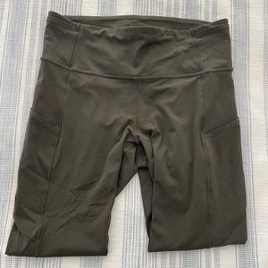 Olive colored cropped fast & frees from lulu! They are buttery soft with side pockets and a drawstring in the waist. In amazing, just like new condition, with no piling or defects!! They are so comfortable, just a bit too big on me.