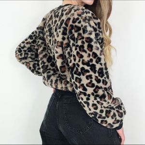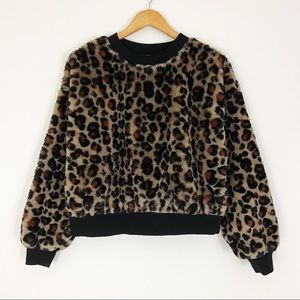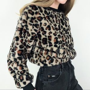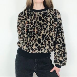 Cropped Faux Fur Leopard Patterned Crewneck | Size S