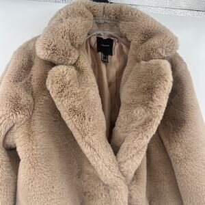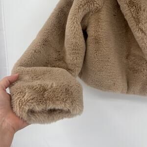 Cropped Faux Fur Womens Jacket Sz L Beige Plush Mob Wife Teddy Preppy Forever 21