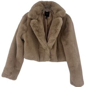 Cropped Faux Fur Womens Jacket Beige Plush Mob Wife Chic Preppy Forever 21