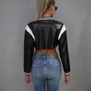 Cropped Faux Leather Bomber Jacket