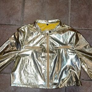 Stylish gold bomber jacket. Perfect for a bold look. Size small purchased from Amazon only worn once in good condition