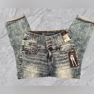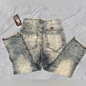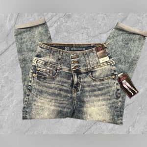 Cropped High Waisted Skinny Jeans Size 11 NWT The waist has a three button enclosure. The material on the jeans is very soft and seems like it would be comfortable to wear.
