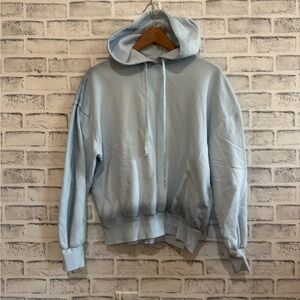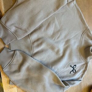 Super cute hoodie cropped to the perfect length. White drawstrings and full length sleeves. Olive army green color. Great condition. Size medium measures approximately 18 inches long 21 inches underarm to underarm laid flat.