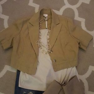 Khaki colored cropped blazer. Really versatile & perfect for fall. ?? Barely worn.