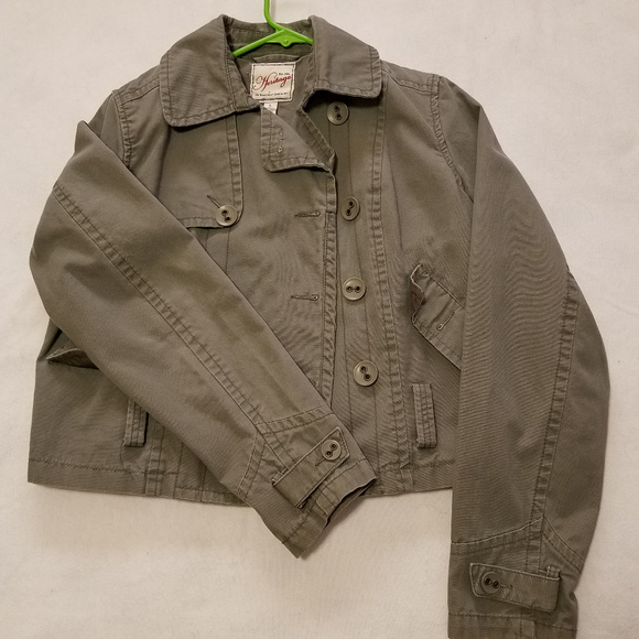 Adorable cropped jacket in olive green. Comfortable and in great gently used condition. Juniors large wears like a women's petite medium.