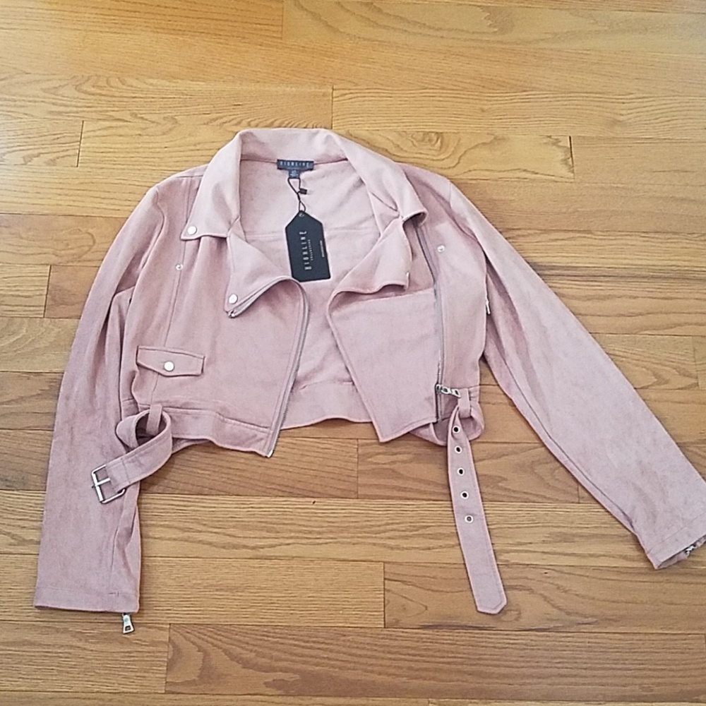 Adorable crop jacket - perfect for those chilly mornings that turn into warmer days. Jacket zips up and also has a belt that you can buckle if you so choose. Sleeves have zippers on them as shown in the pictures.