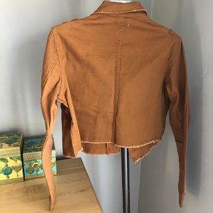 Excellent condition, never worn, details include breast pockets and epaulets and frayed at the waist, cropped style