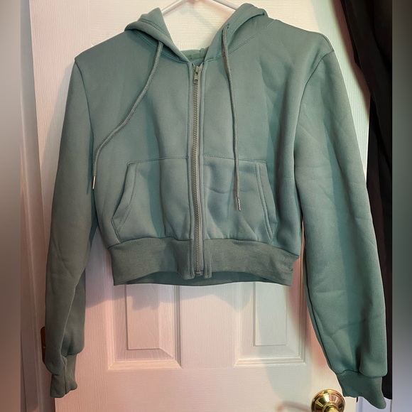 •blue green cropped zip up jacket