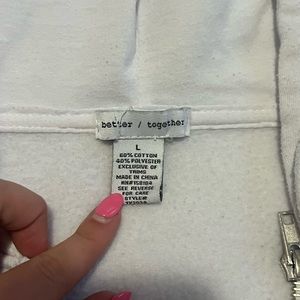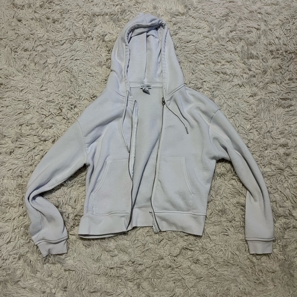 This jacket is super soft! It’s a cropped jacket. It’s been barley worn and is a nice jacket to wear with any outfit. The size is Large but runs small. The Jacket is super comfortable and stylish! If you have any questions or need more pictures and information just comment below!