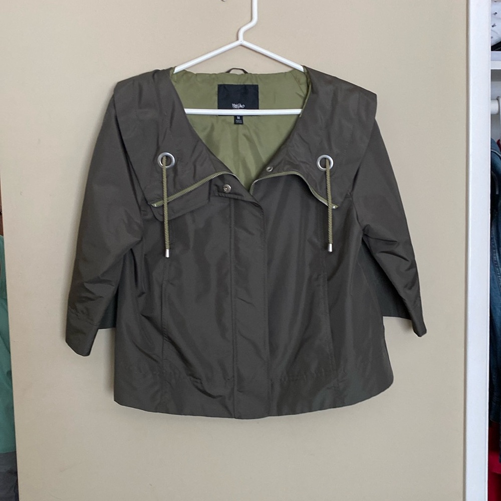 NWOT Windbreaker cropped jacket with zipper and pockets,olive green,3/4 sleeve