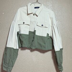 Distressed two-tone cropped jacket. Worn only a few times. From a local boutique in Ruidoso NM.