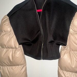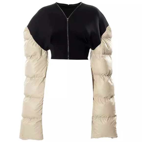 Elevate your style with this chic black and cream jacket. Perfect for any occasion.