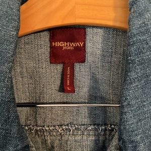 Cropped Jean jacket- super cute. Size says large but can fit medium also, very versatile.