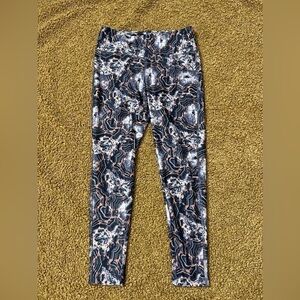 Cropped Jockey Leggings With a Blue and Salmon Pattern