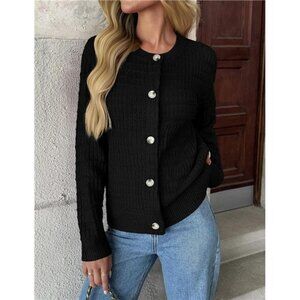 Cropped Knit Cardigan - Open Front Chunky Button Down Sweater
