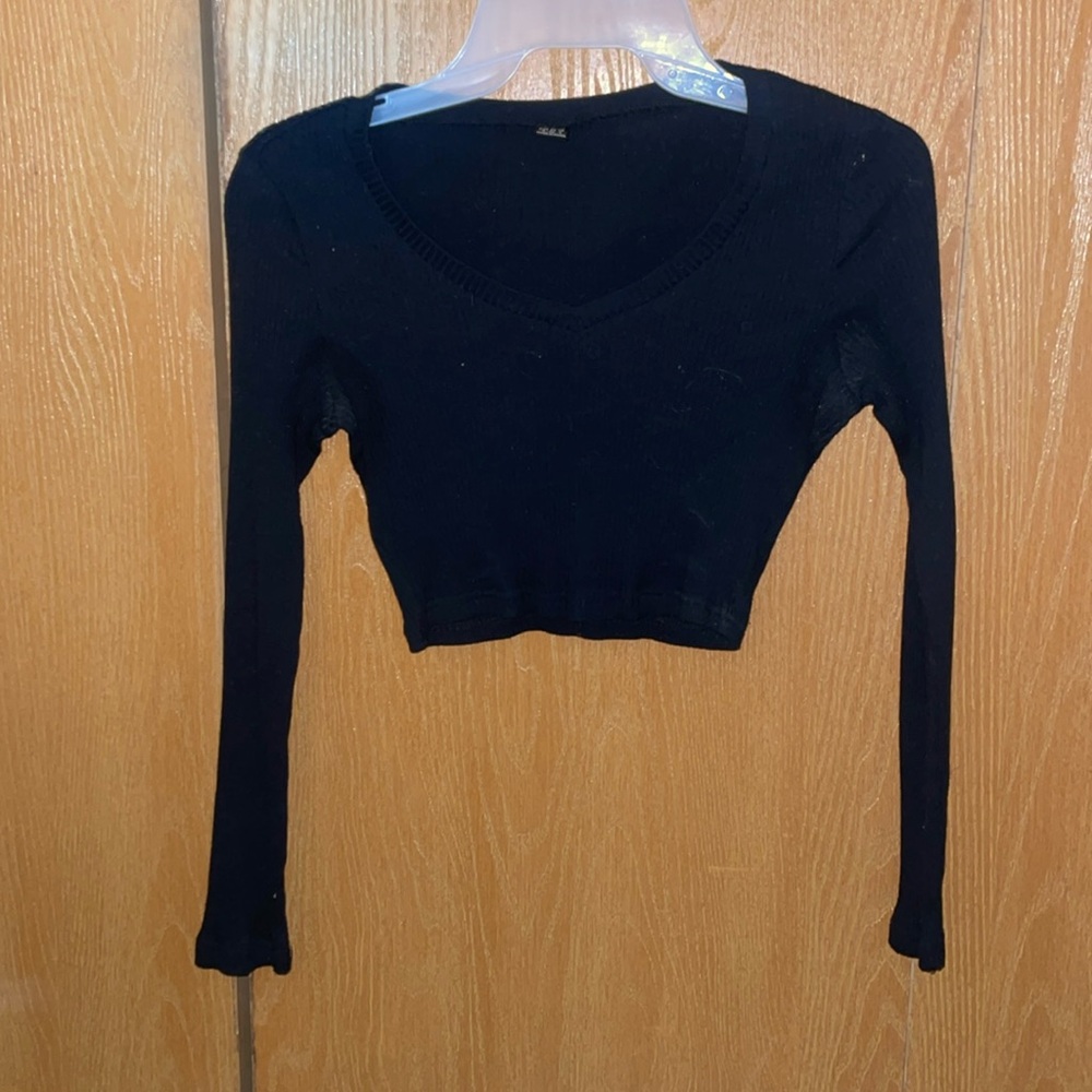 Cropped Long Sleeve Ribbed Top