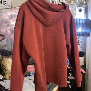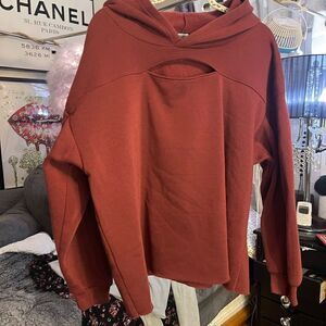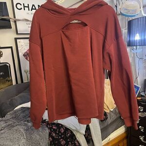 Cropped Maroon red keyhole pullover hooded sweatshirt Hoodie