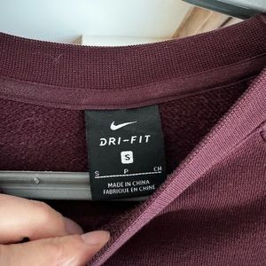 Cropped Nike drifit sweatshirt with raised letters. Burgundy color