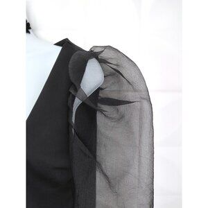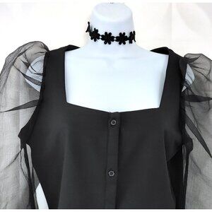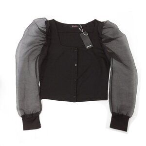 Cropped Organza Puff Sleeve Blouse Black Square Neck Button Front M L Nasty Gal