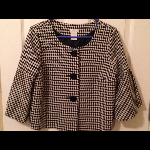 Worthington Herringbone Pattered Cropped Peacoat, three large black buttons, cropped flare sleeves. Size Medium Petite