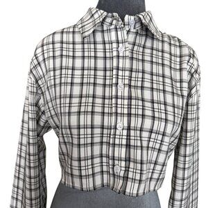 Cropped Plaid Button-Up Shirt With Long Sleeves & Collared Neck